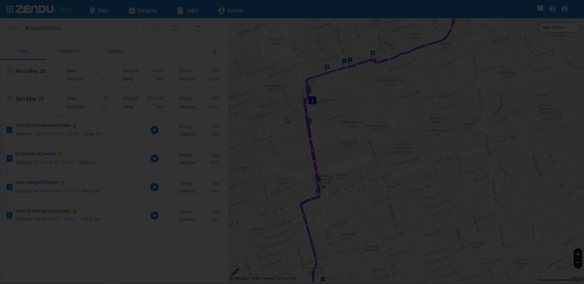 In ZenduCAM, we have added the ability to see all exceptions related to Job trips on the map itself. Managers can click on the exceptions to view the complete details and associated data about the exceptions.