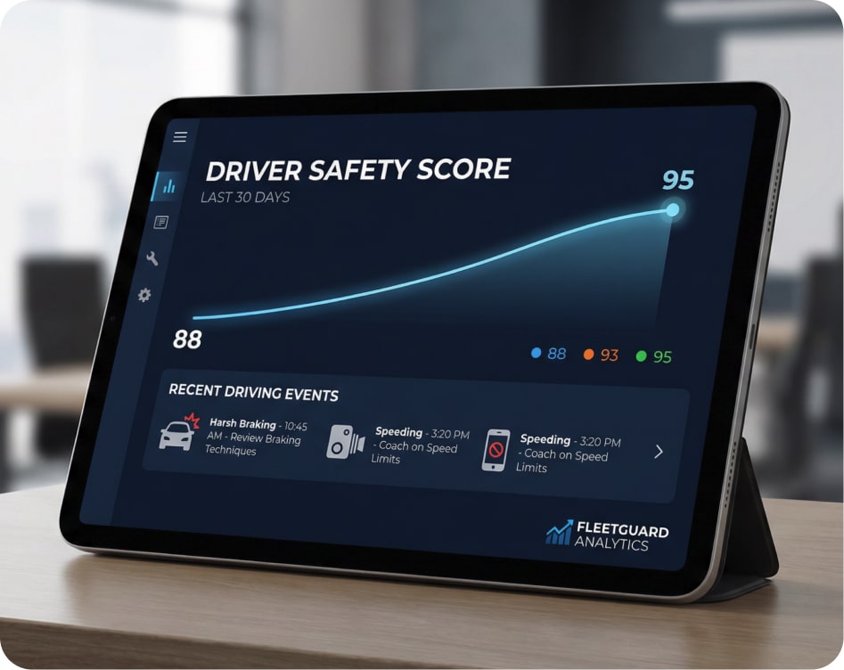 The system knows who is driving — not just which vehicle is moving. Events, coaching, and scores are tied to the right person, every time.