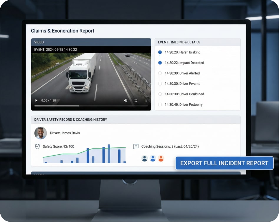When an incident happens, the footage, context, driver record, and coaching history are already organized and ready.
