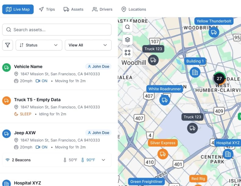 Trusted by 3,000+ fleets across North America” or “Managing 150,000+ connected assets